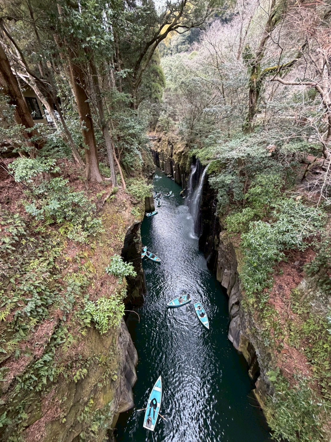 宮崎県にある高千穂狭では、ボートに乗って滝の近くを通れる体験型の観光スポットです!