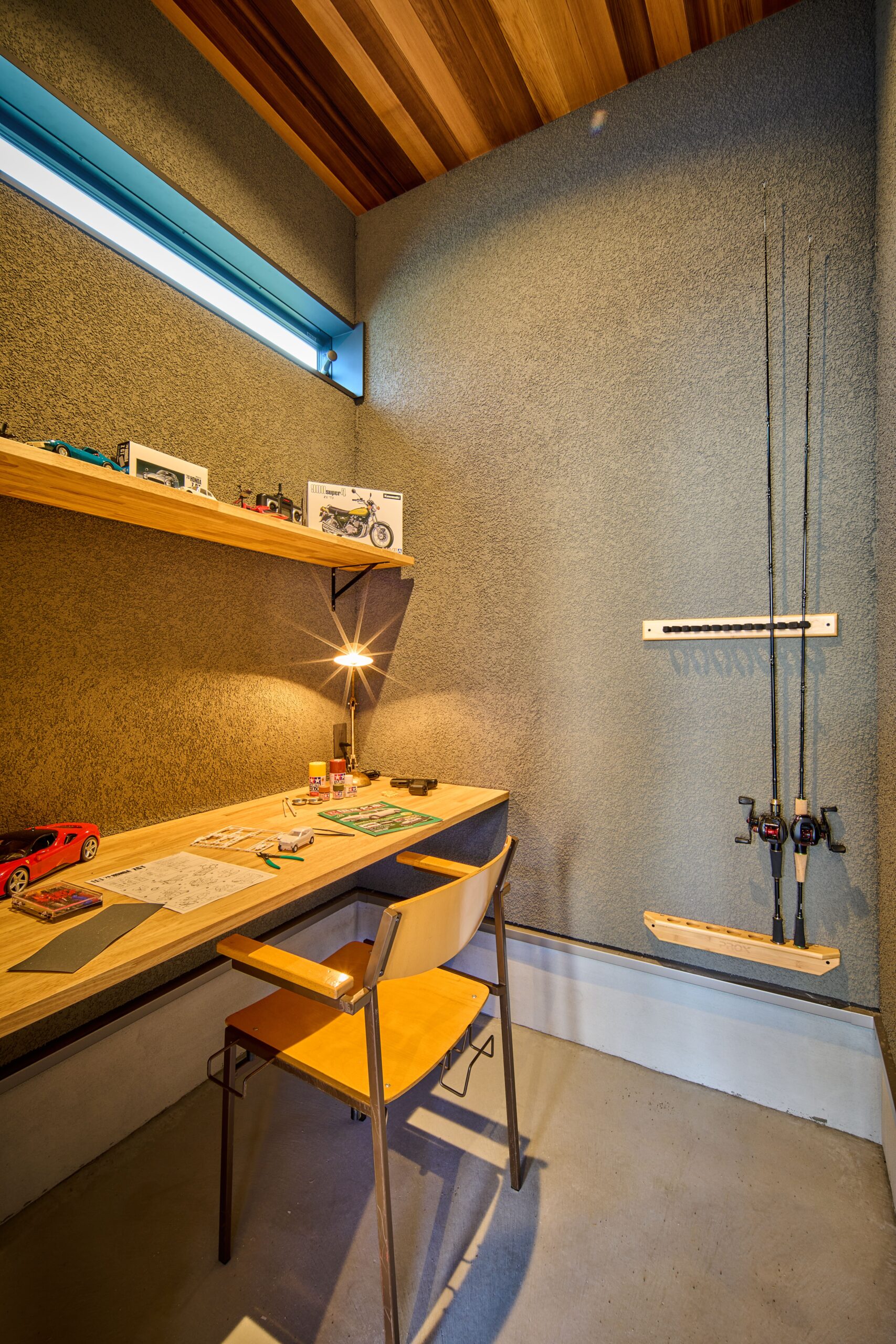 ホールからも出入りできるガレージ奥には趣味室を。